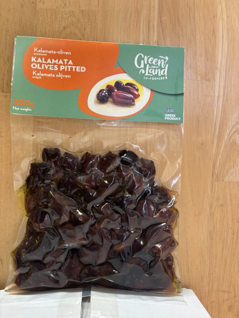 De Kalamata-ontpitte olijven dankt zijn populariteit aan de lekkere fruitige smaak. Daarnaast is hij bijzonder door zijn karakteristieke zwarte of diep paarse kleur. Ook is hij groter dan de meeste tafelolijven en daardoor heeft hij meer vruchtvlees. Bovendien hebben ze volgens de EU-wetgeving een beschermde status (BOB). Ze zijn rijk aan gezonde vetten, ijzer, calcium, Vitamine A en vezels. Onze Greenland boeren slagen de olijven op in een bokaal met netto 200 gr olijven. Deze zitten in een glazen bokaal in  extra vierge olijfolie van de Koroneiki-olijf.